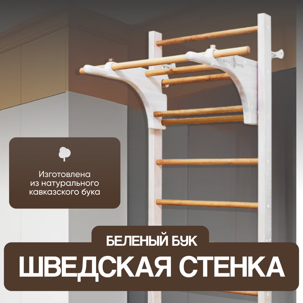 - Шведские лестницы из твердой породы дерева – массива бука. Конструкция монолитная и долговечная.