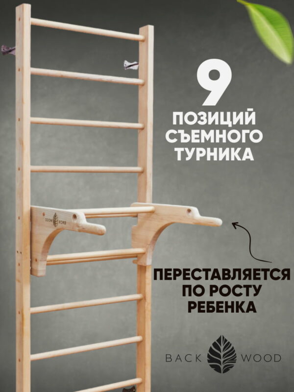 - Съемный турник ставится на любую высоту и может трансформироваться в брусья.