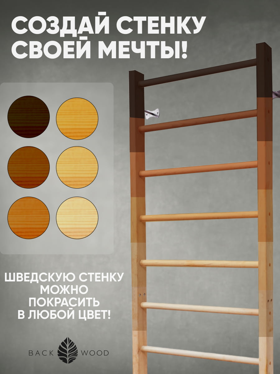 Шведская стенка под самостоятельное покрытие маслом для дерева или другими составами. Актуально для тех, кто хочет индивидуальный оттенок под свой интерьер.