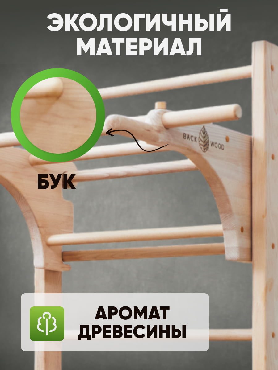 - Шведские лестницы из твердой породы дерева – натурального бука. Конструкция монолитная и долговечная.